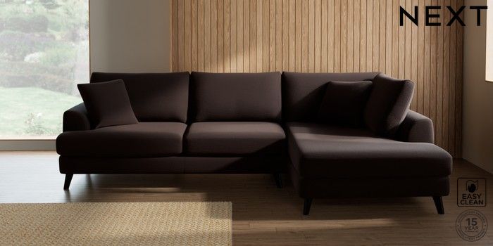 7.3.1 Buy Parker Large Corner Chaise - Right Hand Fine Chenille Easy Clean Chocolate Brown Low Retro Tapered - Dark from the Next UK online shop Click here to use our accessible website