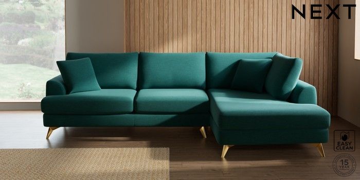 7.3.1 Buy Parker Large Corner Chaise - Right Hand Fine Chenille Easy Clean Dark Juniper Green High Metal - Brass from the Next UK online shop Click here to use our accessible website
