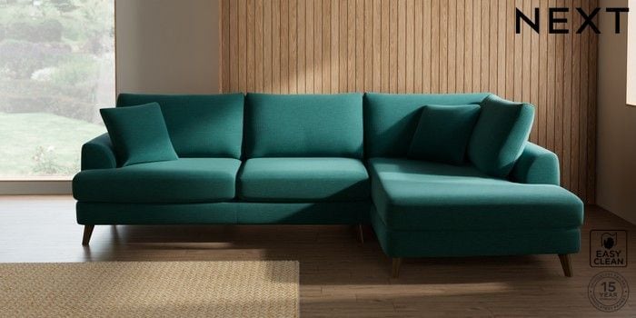 7.2.4 Buy Parker Large Corner Chaise - Right Hand Fine Chenille Easy Clean Dark Juniper Green Low Retro Tapered - Mid from the Next UK online shop Click here to use our accessible website