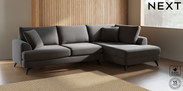 7.2.5 Buy Parker Large Corner Chaise - Right Hand Fine Chenille Easy Clean Dark Smoke Grey High Metal - Black from the Next UK online shop Click here to use our accessible website