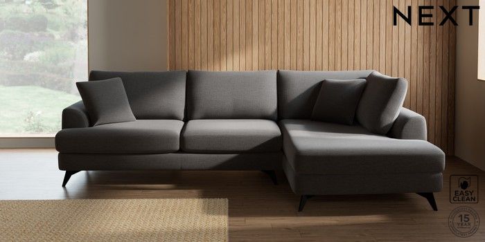 7.3.1 Buy Parker Large Corner Chaise - Right Hand Fine Chenille Easy Clean Dark Smoke Grey High Metal - Black from the Next UK online shop Click here to use our accessible website