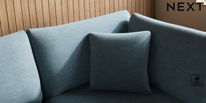 7.3.1 Buy Parker Large Corner Chaise - Right Hand Fine Chenille Easy Clean Mid Blue Low Retro Tapered - Mid from the Next UK online shop Click here to use our accessible website