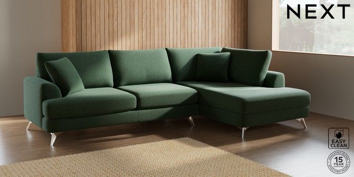 7.2.5 Buy Parker Large Corner Chaise - Right Hand Fine Chenille Easy Clean Mid Khaki Green High Metal - Chrome from the Next UK online shop Click here to use our accessible website