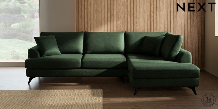 7.3.1 Buy Parker Large Corner Chaise - Right Hand Luxe Chenille Dark Green High Metal - Black from the Next UK online shop Click here to use our accessible website