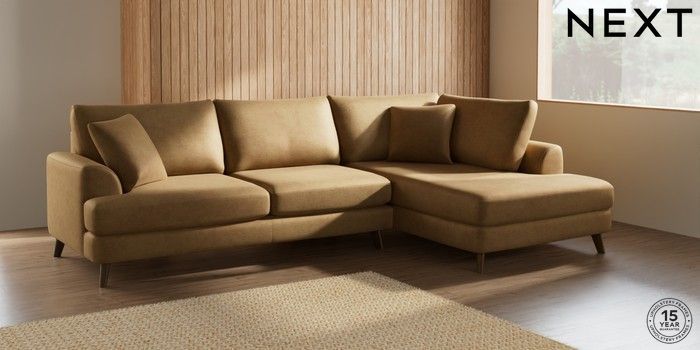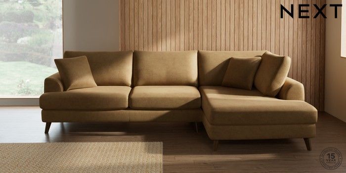 7.0.3 Buy Parker Large Corner Chaise - Right Hand Luxe Chenille Honey Yellow Low Retro Tapered - Mid from the Next UK online shop Click here to use our accessible website