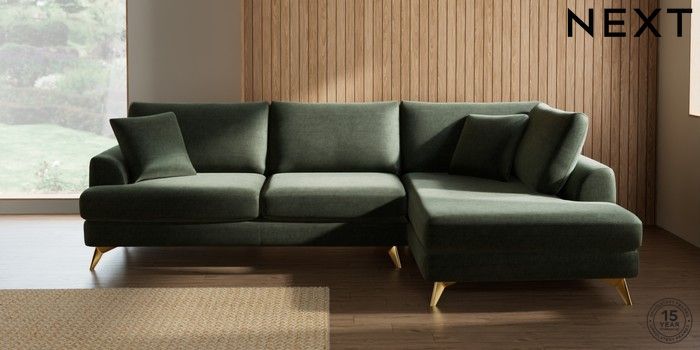 7.0.3 Buy Parker Large Corner Chaise - Right Hand Luxe Chenille Mid Green High Metal - Brass from the Next UK online shop Click here to use our accessible website