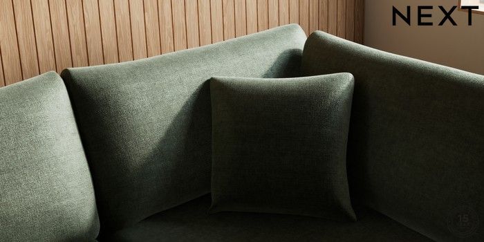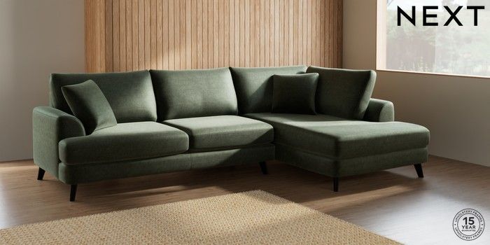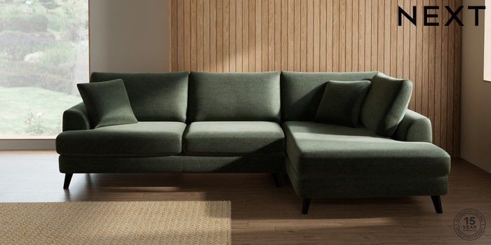 7.0.3 Buy Parker Large Corner Chaise - Right Hand Luxe Chenille Mid Green Low Retro Tapered - Dark from the Next UK online shop Click here to use our accessible website