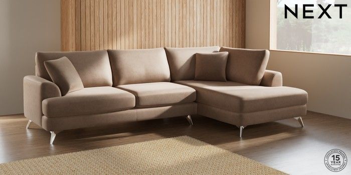 7.2.5 Buy Parker Large Corner Chaise - Right Hand Luxe Chenille Mid Natural High Metal - Chrome from the Next UK online shop Click here to use our accessible website