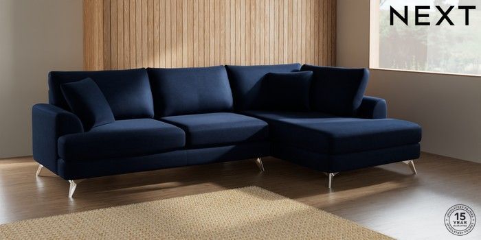 7.2.5 Buy Parker Large Corner Chaise - Right Hand Luxe Chenille Navy Blue High Metal - Chrome from the Next UK online shop Click here to use our accessible website