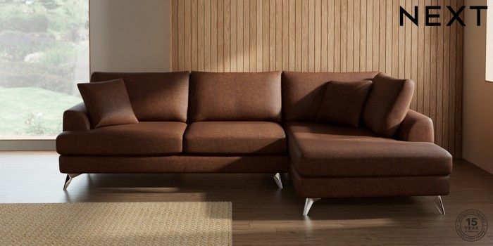 7.3.1 Buy Parker Large Corner Chaise - Right Hand Monza Faux Leather Easy Clean Chestnut Brown High Metal - Chrome from the Next UK online shop Click here to use our accessible website