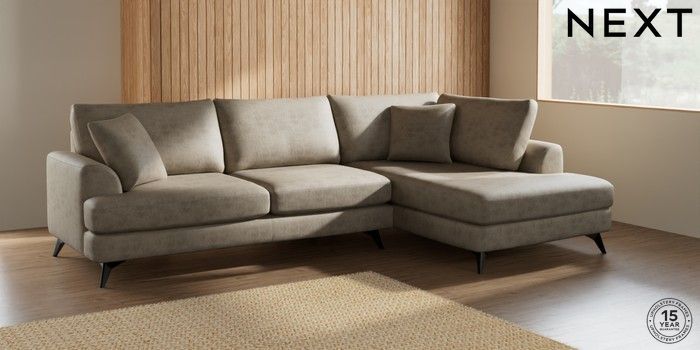 7.2.5 Buy Parker Large Corner Chaise - Right Hand Monza Faux Leather Easy Clean Mink Brown High Metal - Black from the Next UK online shop Click here to use our accessible website