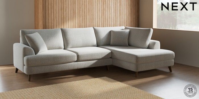 7.2.6 Buy Parker Large Corner Chaise - Right Hand Multi Weave Light Blue Low Retro Tapered - Mid from the Next UK online shop Click here to use our accessible website