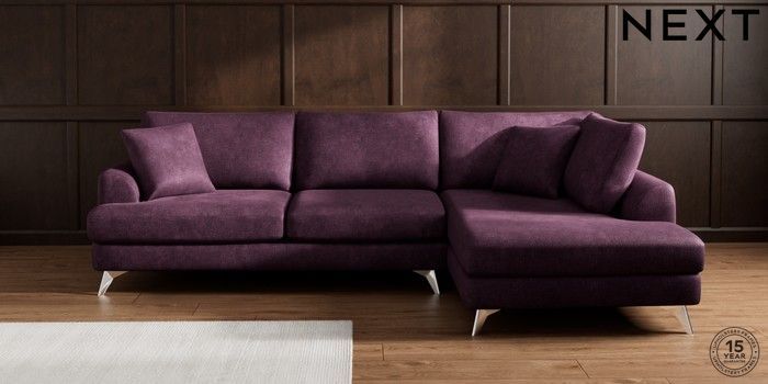 7.3.1 Buy Parker Large Corner Chaise - Right Hand Plush Chenille Dark Plum Purple High Metal - Chrome from the Next UK online shop Click here to use our accessible website