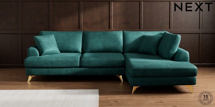 7.3.1 Buy Parker Large Corner Chaise - Right Hand Plush Chenille Dark Teal Green High Metal - Brass from the Next UK online shop Click here to use our accessible website