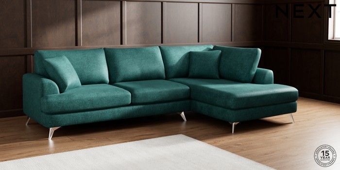 7.2.5 Buy Parker Large Corner Chaise - Right Hand Plush Chenille Dark Teal Green High Metal - Chrome from the Next UK online shop Click here to use our accessible website