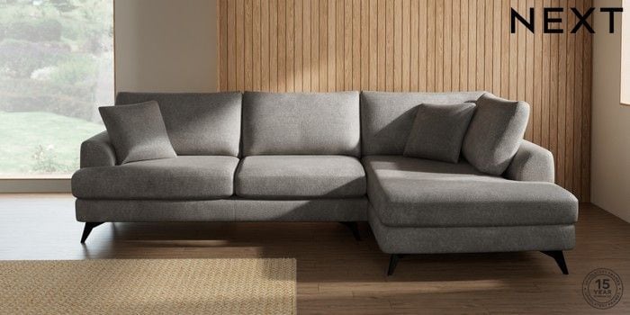 7.2.10 Buy Parker Large Corner Chaise - Right Hand Plush Chenille Light Grey High Metal - Black from the Next UK online shop Click here to use our accessible website