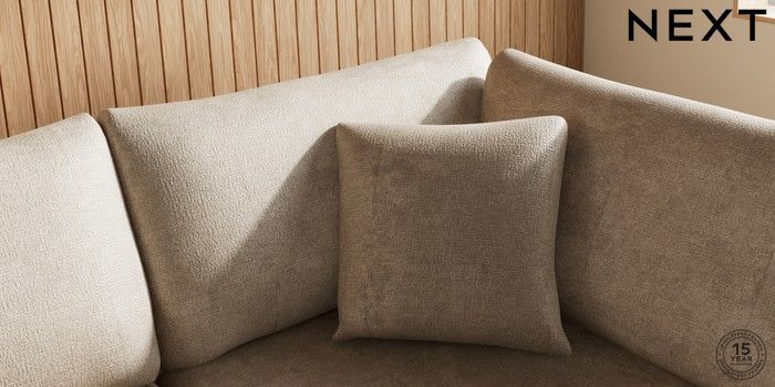 7.3.1 Buy Parker Large Corner Chaise - Right Hand Plush Chenille Light Natural Low Retro Tapered - Dark from the Next UK online shop Click here to use our accessible website