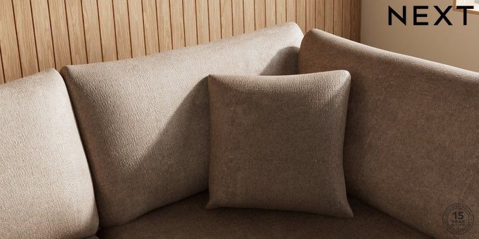 7.3.1 Buy Parker Large Corner Chaise - Right Hand Plush Chenille Mid Natural High Metal - Chrome from the Next UK online shop Click here to use our accessible website