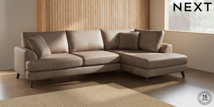 7.2.4 Buy Parker Large Corner Chaise - Right Hand Plush Chenille Mid Natural Low Retro Tapered - Mid from the Next UK online shop Click here to use our accessible website