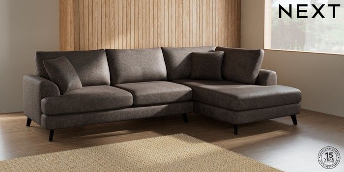 7.2.4 Buy Parker Large Corner Chaise - Right Hand Plush Chenille Mink Brown Low Retro Tapered - Dark from the Next UK online shop Click here to use our accessible website