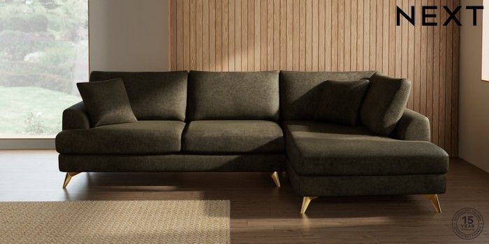 7.3.1 Buy Parker Large Corner Chaise - Right Hand Plush Chenille Moss Green High Metal - Brass from the Next UK online shop Click here to use our accessible website