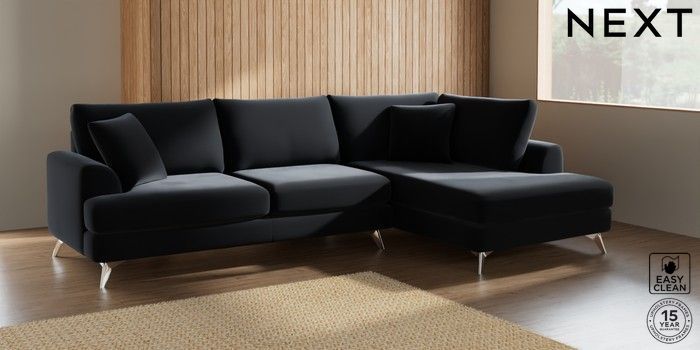 7.2.5 Buy Parker Large Corner Chaise - Right Hand Plush Velvet Easy Clean Charcoal Grey High Metal - Chrome from the Next UK online shop Click here to use our accessible website