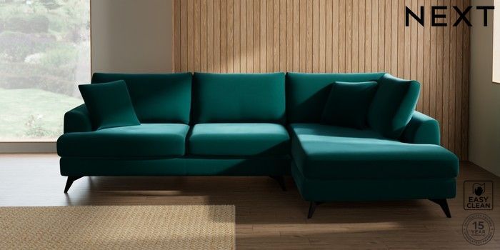 7.3.1 Buy Parker Large Corner Chaise - Right Hand Plush Velvet Easy Clean Juniper Green High Metal - Black from the Next UK online shop Click here to use our accessible website