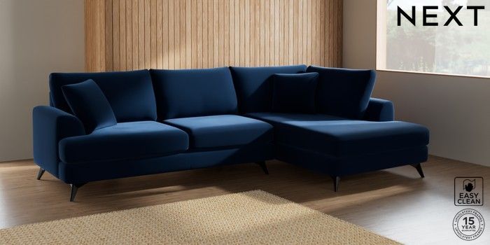 7.2.5 Buy Parker Large Corner Chaise - Right Hand Plush Velvet Easy Clean Navy Blue High Metal - Black from the Next UK online shop Click here to use our accessible website