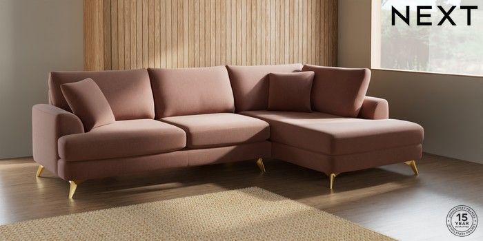 7.2.5 Buy Parker Large Corner Chaise - Right Hand Relaxed Linen Look Light Rust Brown High Metal - Brass from the Next UK online shop Click here to use our accessible website