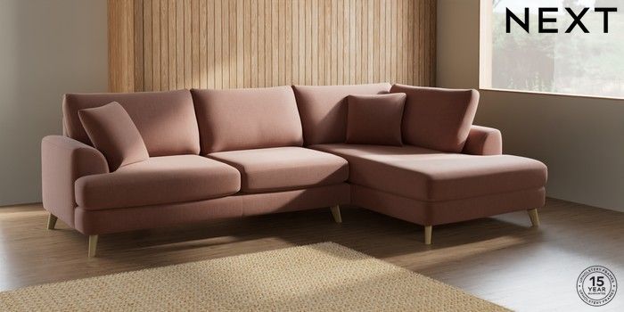 7.2.5 Buy Parker Large Corner Chaise - Right Hand Relaxed Linen Look Light Rust Brown Low Retro Tapered - Light from the Next UK online shop Click here to use our accessible website