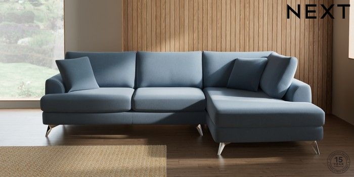 7.3.1 Buy Parker Large Corner Chaise - Right Hand Relaxed Linen Look Mid Blue High Metal - Chrome from the Next UK online shop Click here to use our accessible website