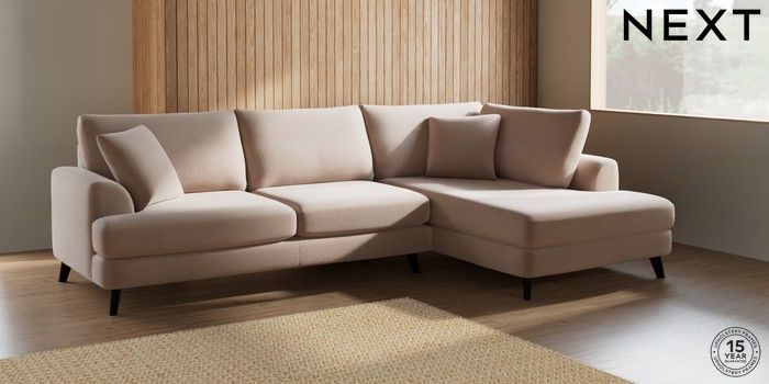 7.2.5 Buy Parker Large Corner Chaise - Right Hand Relaxed Linen Look Mid Natural Low Retro Tapered - Dark from the Next UK online shop Click here to use our accessible website