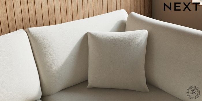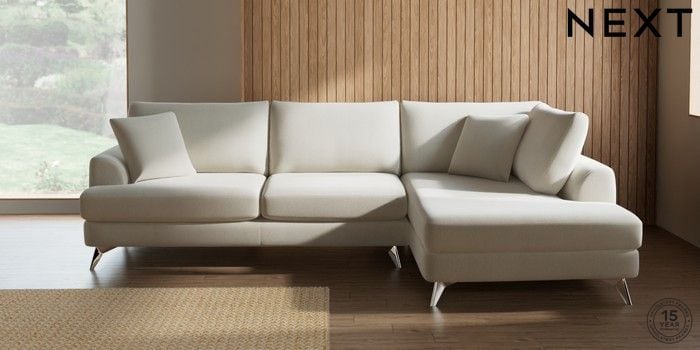 7.3.1 Buy Parker Large Corner Chaise - Right Hand Relaxed Linen Look Oyster High Metal - Chrome from the Next UK online shop Click here to use our accessible website