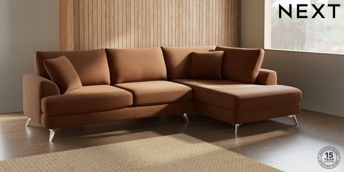 7.2.5 Buy Parker Large Corner Chaise - Right Hand Ripple Chenille Mid Rust Brown High Metal - Chrome from the Next UK online shop Click here to use our accessible website