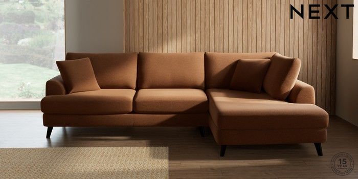 7.2.10 Buy Parker Large Corner Chaise - Right Hand Ripple Chenille Mid Rust Brown Low Retro Tapered - Dark from the Next UK online shop Click here to use our accessible website