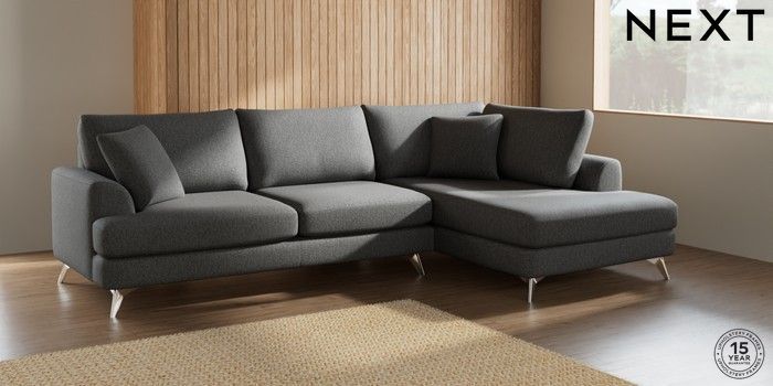 7.2.5 Buy Parker Large Corner Chaise - Right Hand Tweedy Chenille Dark Grey High Metal - Chrome from the Next UK online shop Click here to use our accessible website