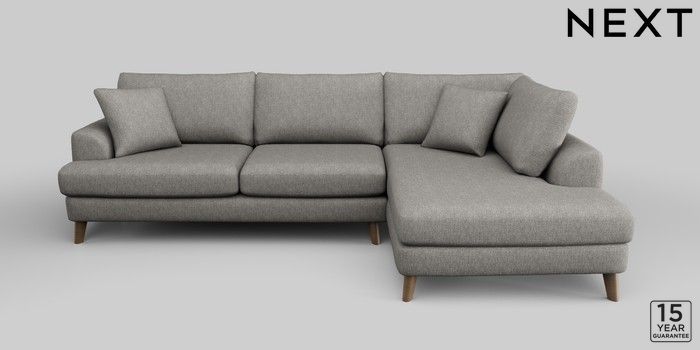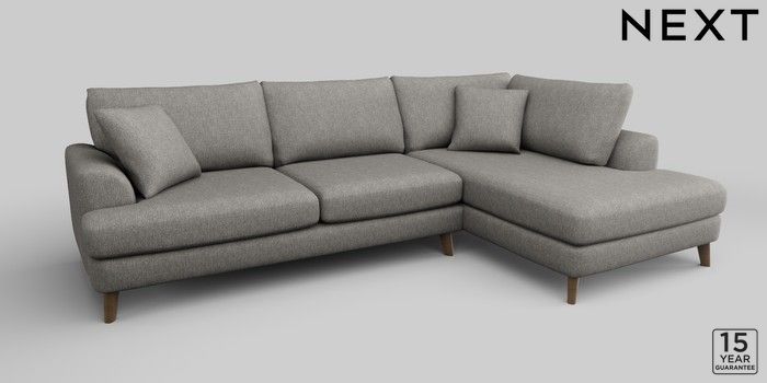 6.12.1 Buy Parker Large Corner Chaise - Right Hand Tweedy Chenille Mid Grey Low Retro Tapered - Mid from the Next UK online shop Click here to use our accessible website