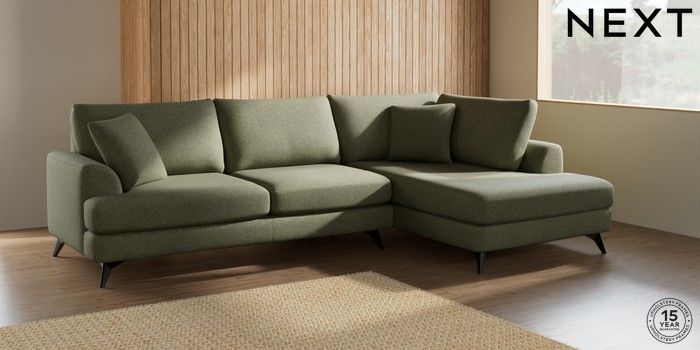 7.2.5 Buy Parker Large Corner Chaise - Right Hand Tweedy Chenille Mid Moss Green High Metal - Black from the Next UK online shop Click here to use our accessible website