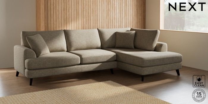 7.2.5 Buy Parker Large Corner Chaise - Right Hand Woven Chenille Easy Clean Mid Natural Low Retro Tapered - Dark from the Next UK online shop Click here to use our accessible website
