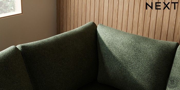 7.2.10 Buy Parker Large Corner Sofa - Left Hand Boucle Chenille Dark Moss Green High Metal - Black from the Next UK online shop Click here to use our accessible website