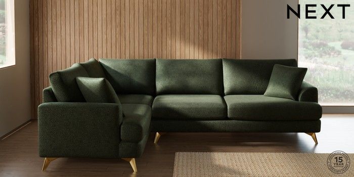 7.2.10 Buy Parker Large Corner Sofa - Left Hand Boucle Chenille Dark Moss Green High Metal - Brass from the Next UK online shop Click here to use our accessible website