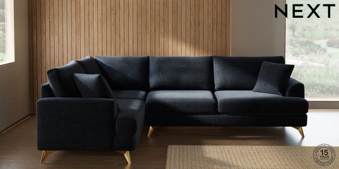 7.2.10 Buy Parker Large Corner Sofa - Left Hand Boucle Chenille Dark Slate Blue High Metal - Brass from the Next UK online shop Click here to use our accessible website