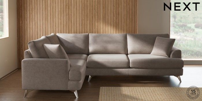 7.2.10 Buy Parker Large Corner Sofa - Left Hand Boucle Chenille Light Natural High Metal - Chrome from the Next UK online shop Click here to use our accessible website