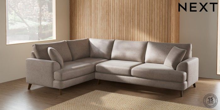7.2.5 Buy Parker Large Corner Sofa - Left Hand Boucle Chenille Light Natural Low Retro Tapered - Mid from the Next UK online shop Click here to use our accessible website