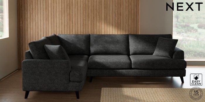 7.2.10 Buy Parker Large Corner Sofa - Left Hand Boucle Weave Easy Clean Charcoal Grey Low Retro Tapered - Dark from the Next UK online shop Click here to use our accessible website