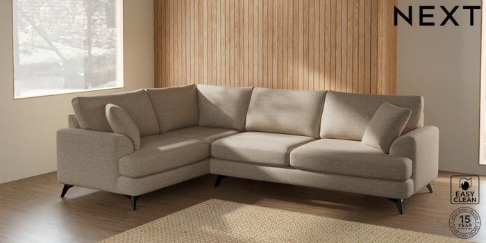 7.2.5 Buy Parker Large Corner Sofa - Left Hand Boucle Weave Easy Clean Dark Natural High Metal - Black from the Next UK online shop Click here to use our accessible website