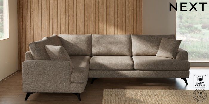 7.2.10 Buy Parker Large Corner Sofa - Left Hand Chunky Boucle Easy Clean Mid Natural High Metal - Black from the Next UK online shop Click here to use our accessible website
