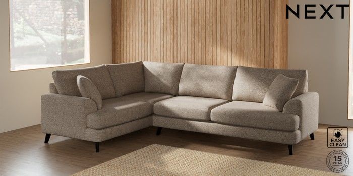 7.2.6 Buy Parker Large Corner Sofa - Left Hand Chunky Boucle Easy Clean Mid Natural Low Retro Tapered - Dark from the Next UK online shop Click here to use our accessible website