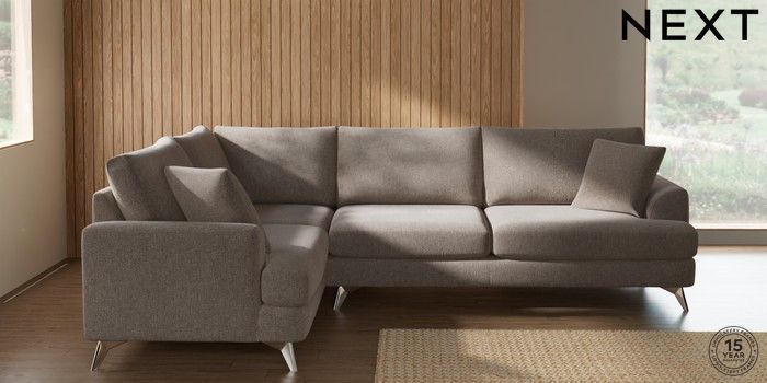7.2.10 Buy Parker Large Corner Sofa - Left Hand Chunky Chenille Light Dove High Metal - Chrome from the Next UK online shop Click here to use our accessible website