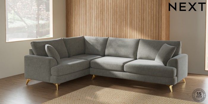 7.2.5 Buy Parker Large Corner Sofa - Left Hand Chunky Chenille Light Grey High Metal - Brass from the Next UK online shop Click here to use our accessible website